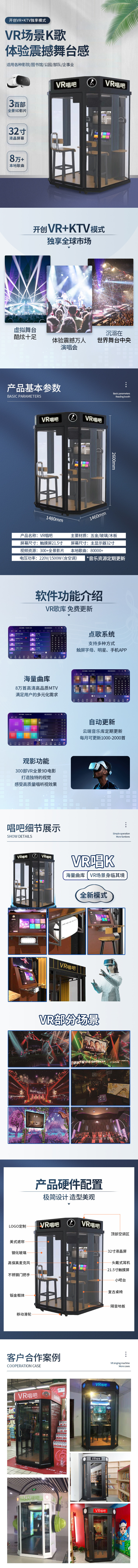产品特点:VR唱吧是唱歌娱乐设备,它融合人们与KTV娱乐方式演唱会,打造沉溺式K歌新模式。让人仿佛身于璀璨的舞台,闪耀登场,迎接您的专属演唱会。