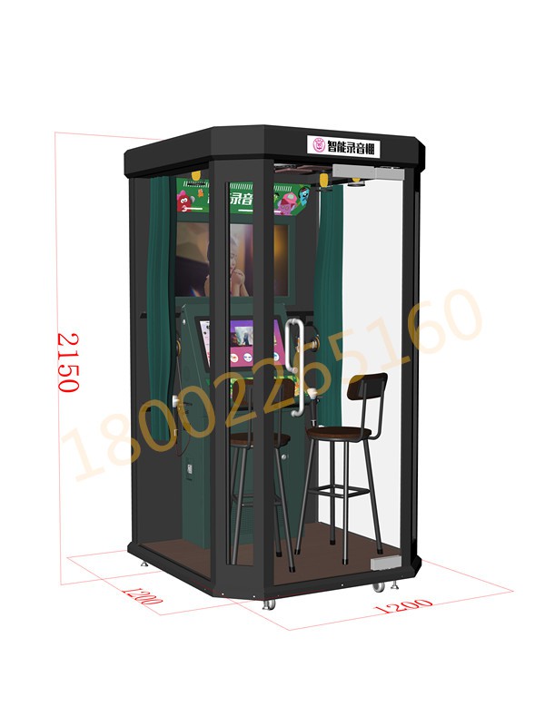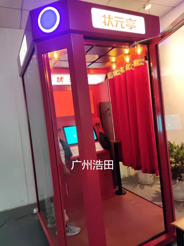 浩田移动自助唱吧占地面积仅2平米,设备独立钢化玻璃,一体化铁架,可拆卸自由变更经营位置。