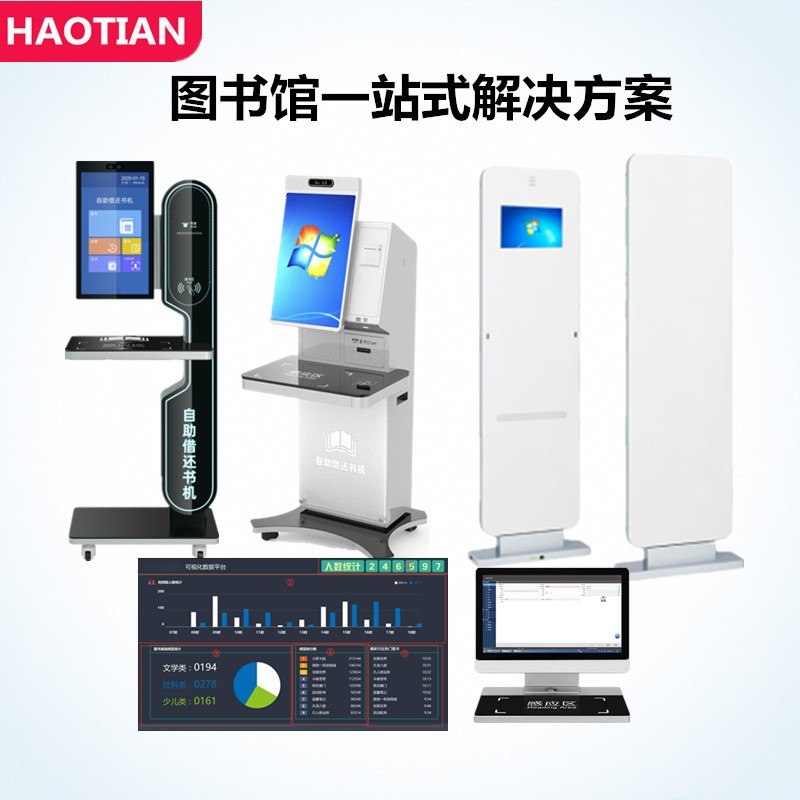 图书馆整体解决方案分别有:自助借还书机、RFID门禁系统、AI人脸识别+视觉客流统计摄像头、自助借阅终端机(壁挂借还书机)、馆员一体机、图书查询机、数据显示一体机、超高频手持盘点机、移动还书箱、RFID图书管理系统等一系列产品,详情请咨询,服务热线:18002265160 肖经理。