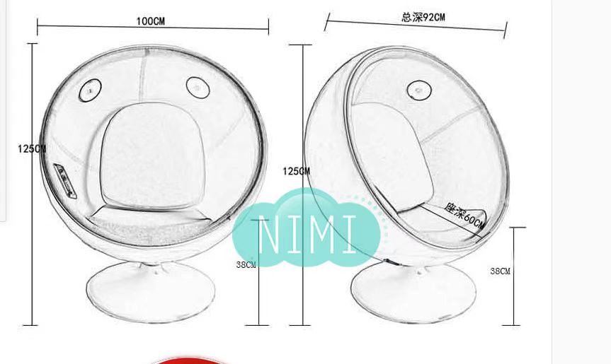 1.外观:蛋椅玻璃钢造型,可360度旋转;